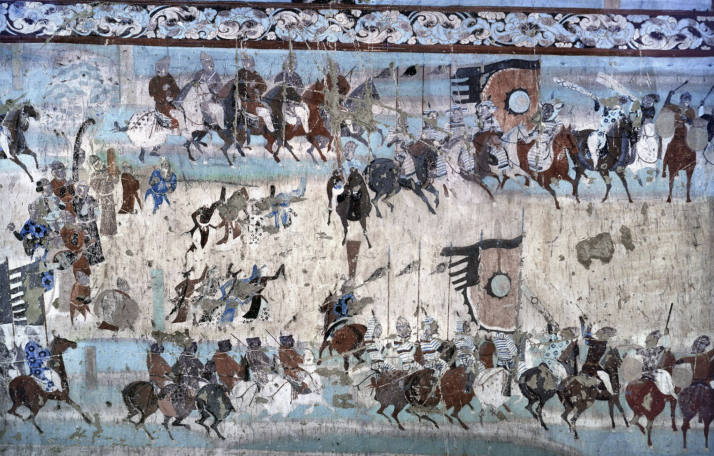 公元751年,唐朝将军高仙芝在京城斩下了石国国王的人头,便随即志得意满,心怀壮志地再次出征几千里外的西域,准备击退石国最后的靠山–阿拉伯帝国(中国称之为大食)。一路行进到今天的哈萨克斯坦塔拉斯河河岸附近,酷暑下的中国军队终于遭遇了身裹黑衣的大食军队。高仙芝远征大胜的名声传遍了唐朝,但是他很快就要面临一场苦战和失败。怛罗斯之战并非一场两大帝国之间的决战,也并非一场动摇根基的战争。两个帝国都扩张到彼此的边界却依旧遥不可及。正所谓物极必反,盛极必衰,一次短暂的见面也许无法预见彼此殊途同归的命运,正如高仙芝自己可能从未想过辉煌时刻转瞬即逝。四年后,安史之乱,唐朝由盛转衰,再不能复起。半个世纪之后,红衣军起义,阿拔斯王朝的盛况也走向了终点。
